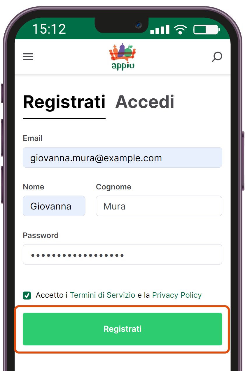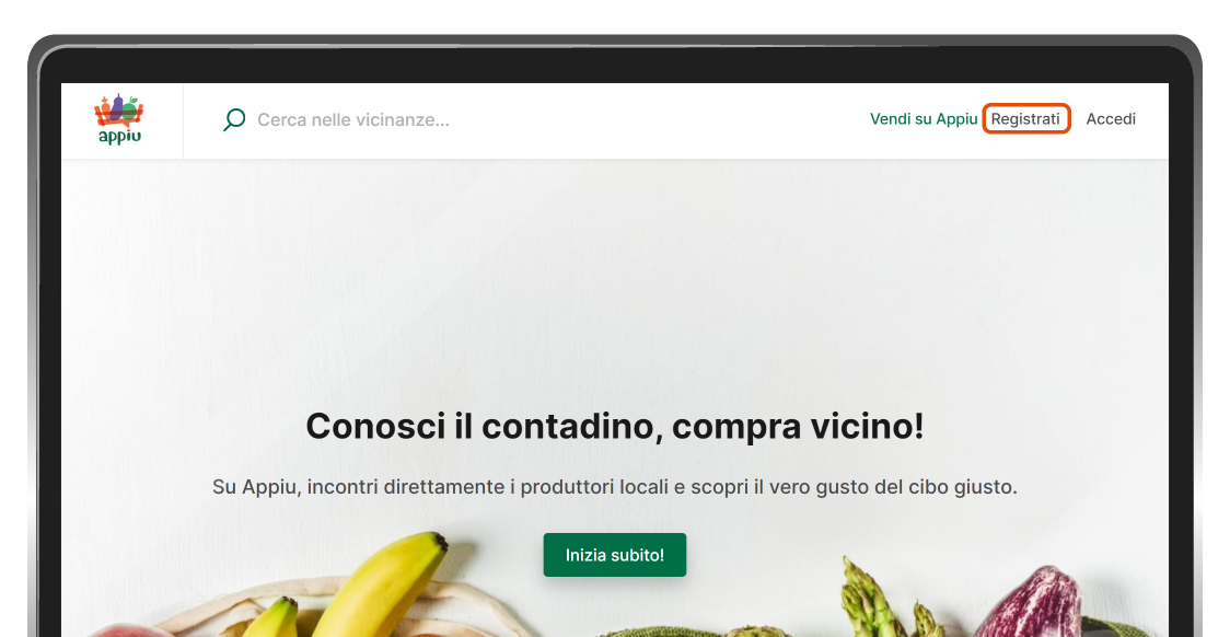 Apri www.appiu.it e clicca su “Registrati” in alto a destra.