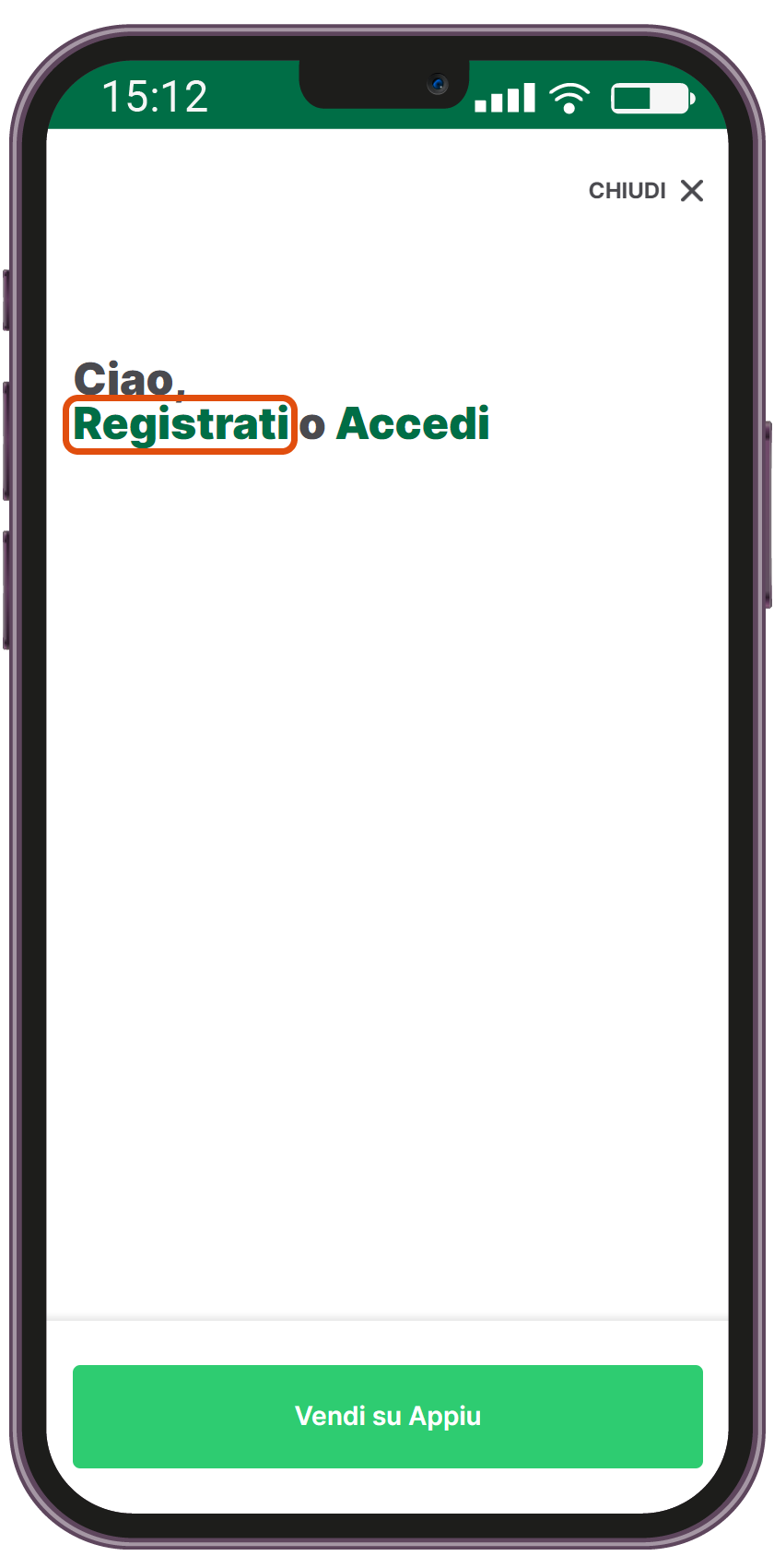 Se accedi da smartphone clicca sulle tre linee in alto a sinistra e successivamente sulla scritta “Registrati” in verde.