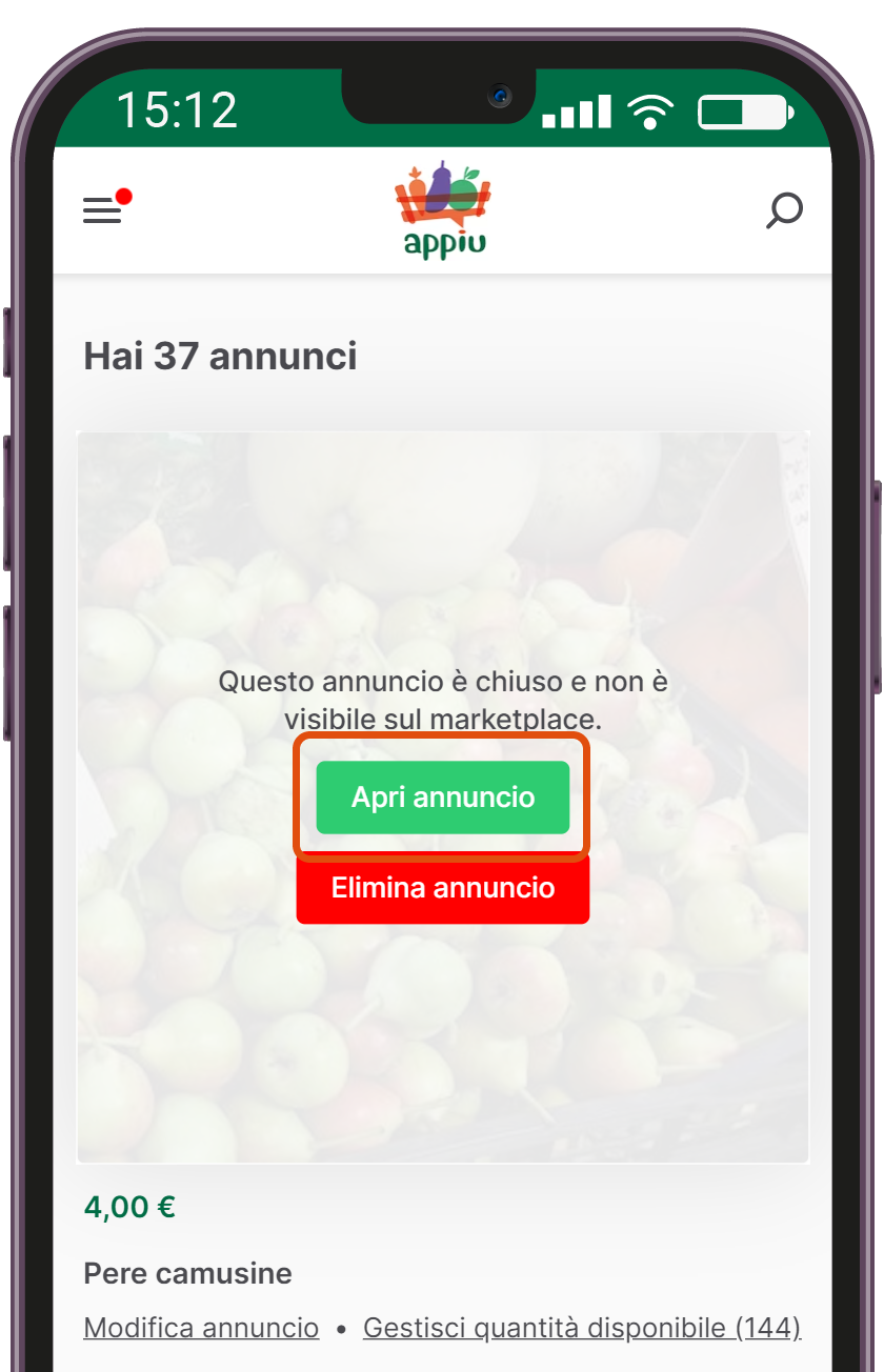 Se in futuro decidi di riaprire l’annuncio, clicca semplicemente sul pulsante “Apri annuncio” sull’immagine del prodotto e sarà di nuovo visibile nel marketplace.
